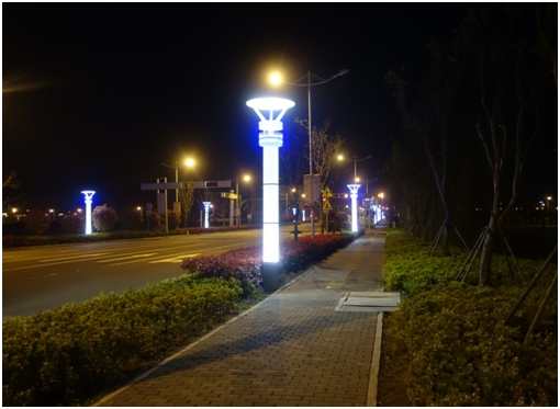 此次試運行的柱燈北起清水河、南至富民河,共計53套,施工單位正在對其進行調試,確保所有燈具都能以最好的狀態展現給園區居民。