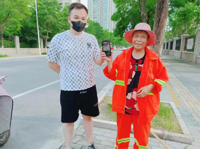 “想不到丟失的手機還能找回,真是太感謝王阿姨了!” 8月24日,在園區天池山路,面對失而復得的手機,失主劉先生激動地握著環衛工人王守榮的手,對她拾金不昧的高尚品質表示衷心感謝。