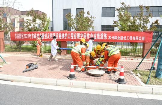 4月19日上午,建發公司市政物業部組織開展有限空間作業事故應急演練。園區全體城維單位項目負責人及安全管理人員現場觀摩。