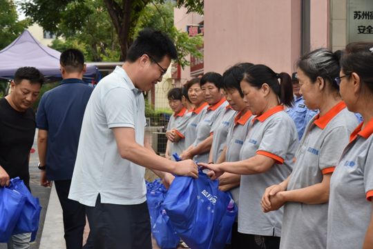 三伏天以來,宿遷地區氣溫節節攀高,連日高溫天氣給一線勞動者帶來了嚴峻考驗。為切實做好防暑降溫工作,保障一線勞動者的身體健康安全, 8月14日,建發公司組織開展“一線送清涼”高溫慰問活動。公司副總經理倪松、相關部門負責人共同參加了慰問。