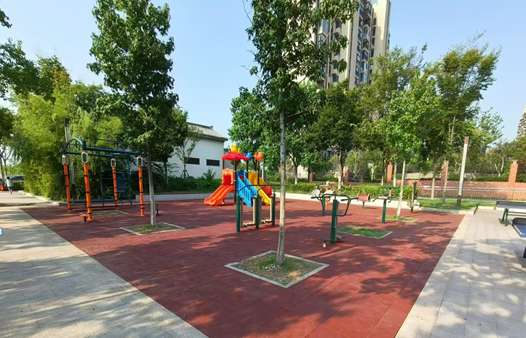近期,建發公司完成文景閣公園兒童娛樂場、健身場的地墊重新鋪設,并重新對外開放。