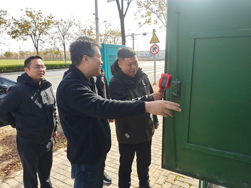 在檢查垃圾中轉站、路燈箱變、防汛閘站、河道駁岸時,檢查組認真查看安全措施是否按要求嚴格執行到位,運行巡檢記錄是否齊全,救生器材是否定期進行檢查、維護,閘站消防沙池、消防锨、消防桶等配備是否齊全到位;檢查組還詳細了解了垃圾壓縮設備電子圍欄報警裝置安裝使用情況,并現場使用紅外成像儀監測路燈箱變運行情況。