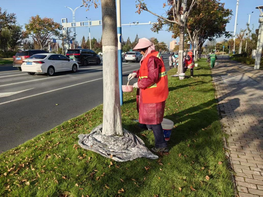 隨著氣溫逐步降低,建發公司全面啟動樹木涂白工作,為道路、公園、廣場及景觀帶的喬灌木穿上抗凍防寒、抵御病蟲害的“防護衣”,以保障其安全越冬,提高保存率,進一步擦亮城市生態底色。