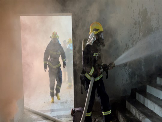 下午15點50分,科技物流園內部突然起火,現場濃煙滾滾,相關工作人員立即采取自救措施,通知義務消防員有序組織人員疏散,消防官兵到場后,立即迅速組織對被困人員實施救援,及時堵截火勢、控制火情,經過近30分鐘的滅火救援戰斗,大火被徹底撲滅,演練取得了圓滿成功。