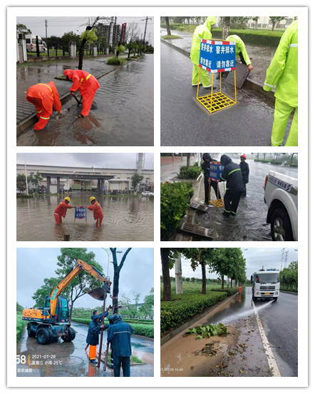市政巡查搶險組按照區域劃分到達現場,第一時間開啟雨水井蓋,安放窨井排水警示罩并安排專人值守確保安全;強排組迅速進駐閘站,待接到園區防汛指揮部指令后開啟水泵強排,電力保障組跟進做好電力保障工作;園林巡查組組織人員機械持續巡查,及時處置倒伏樹木。