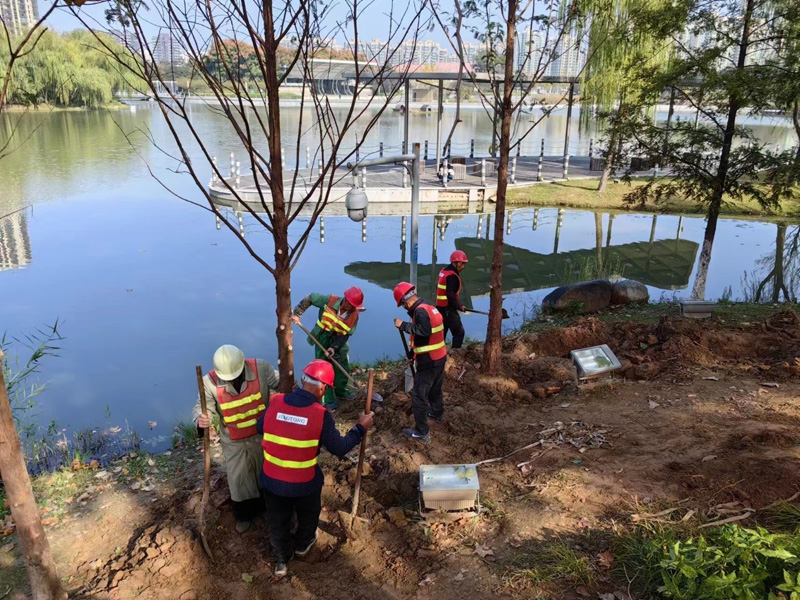 建發公司市政物業部根據今年氣候特點和苗木品種特性分階段性有計劃實施補植工作。提前做好死亡、缺失、長勢不良綠化苗木統計工作,同時針對補植量大的日本晚櫻綠化苗木開展專項考察工作;其次召開專題會議,要求施工單位根據苗木生活習性,堅持“先落葉、后常綠、先喬木、后灌木”的原則,結合今年氣候特點,合理安排補苗時間,確保入冬前全部補植到位;最后強調施工單位對新補植苗木澆灌“定根水、生根劑”和加強樹穴病毒消殺、支撐、防寒保暖等相關措施,提高苗木成活率。