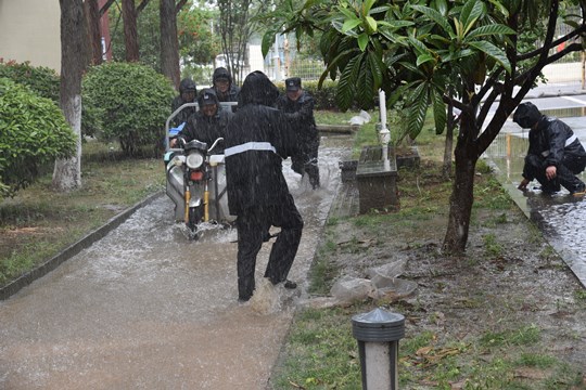演練模擬的背景為近日來園區連降暴雨,園區公舍宿舍樓內有人員被困,樓道內架空層被雨水淹沒,電動車充電樁及相關設備被雨水淹沒。