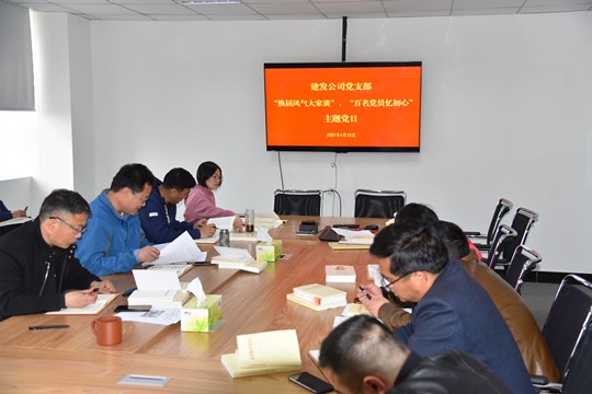 4月13日下午,建發公司黨支部召開黨史學習教育集中學習會,并開展“換屆風氣大家談”、“百名黨員憶初心”主題黨日活動。公司全體黨員、發展對象和入黨積極分子參加活動。