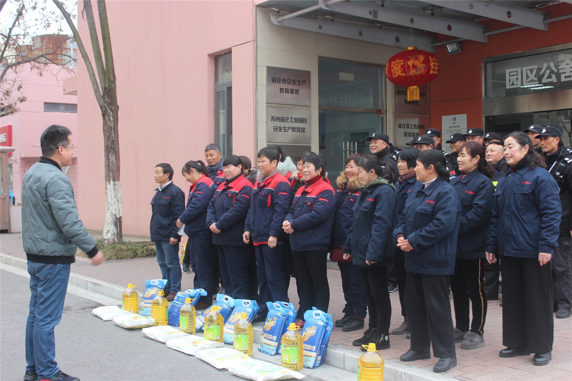 在新春佳節即將來臨之際,1月21日下午,公司副總經理倪松慰問了奮戰在一線保潔及保安人員,為他們送上了米、面粉、油等慰問品。