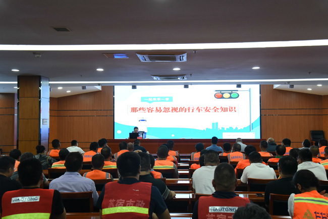 為提升園區城維護車輛駕駛員交通安全意識,有效預防和減少交通事故的發生,9月12日下午,建發公司邀請園區交警中隊李勃指導員為城市維護車輛駕駛員做行車安全知識培訓,市政物業部及城市維護全體駕駛員參加培訓。