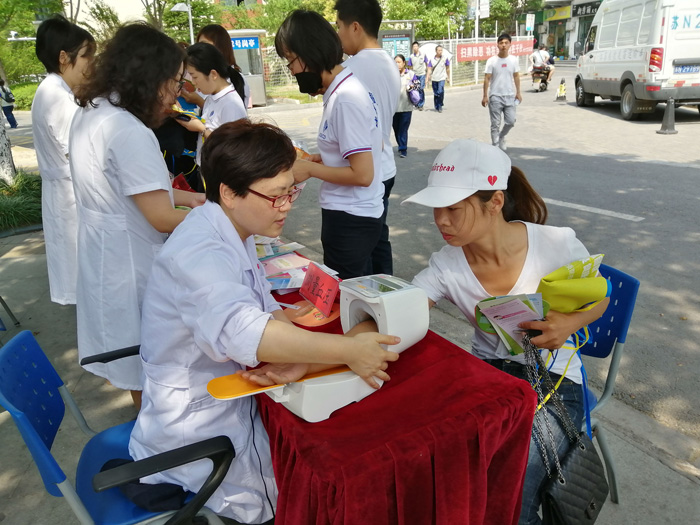 活動通過設立咨詢臺、免費測血壓、擺放展板、發放膳食指南宣傳折頁、手冊等形式向職工宣傳健康膳食的理念。活動中市營養學會的相關專家耐心地給予解答,并向來訪員工發放新版膳食指南、高血壓營養治療原則等科普宣傳資料,讓大家了解最新的膳食知識。