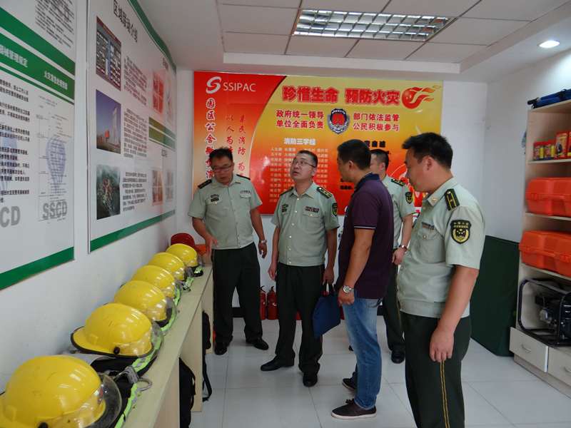 7月19日上午,宿遷市消防支隊副支隊長丁遠營到園區檢查夏季消防安全工作,園區消防大隊大隊長宗靈明、園區公舍安全負責人陪同檢查。