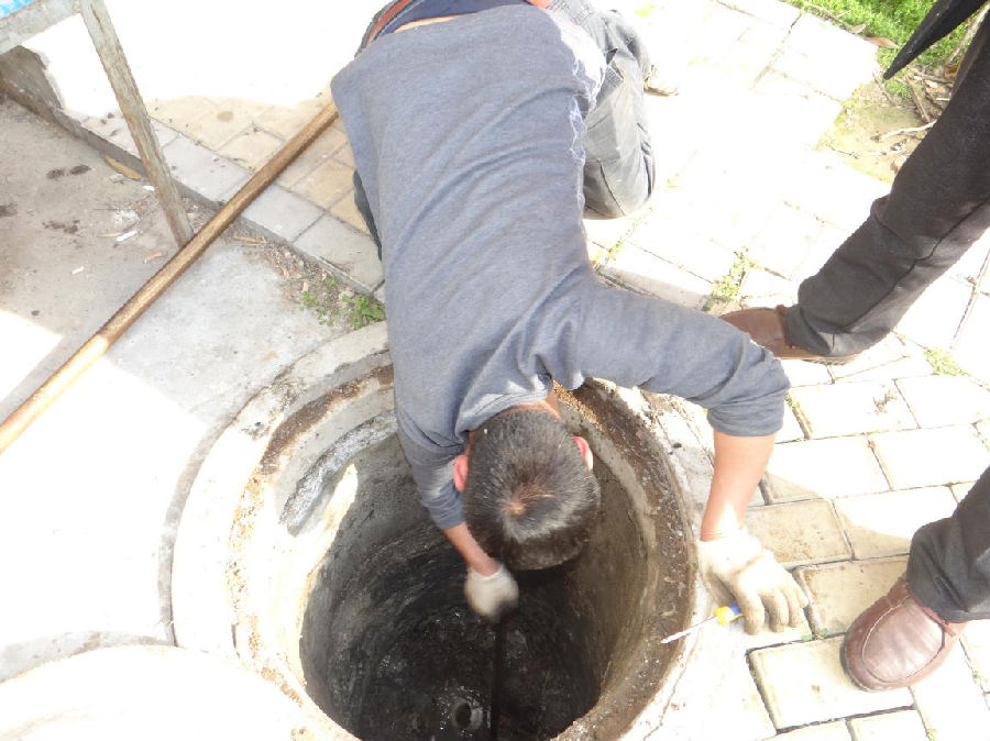 工人依次將井蓋掀開,發現水泥井下面油污淤積致管道堵塞,其主要原因是,每日產生的殘羹剩菜和廢棄物未經過濾網直接流入下水管道,固體垃圾進入管道遇到油污后導致管道堵塞。