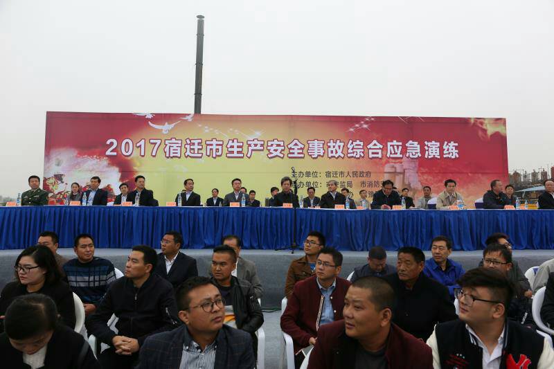 10月17日上午10時,2017宿遷市生產安全事故綜合應急救援演練活動在宿遷生態化工科技產業園隆重舉行。此次活動由宿遷市人民政府主辦,市安監局、市消防支隊、市應急辦、宿豫區人民政府承辦。省安監局副局長趙啟鳳,省政府總值班室副主任薛廣建,市委副書記、市長王天琦,現場觀摩演練。市直有關單位,以及各縣、區,市各開發區、新區、園區相關負責人現場觀摩演練。