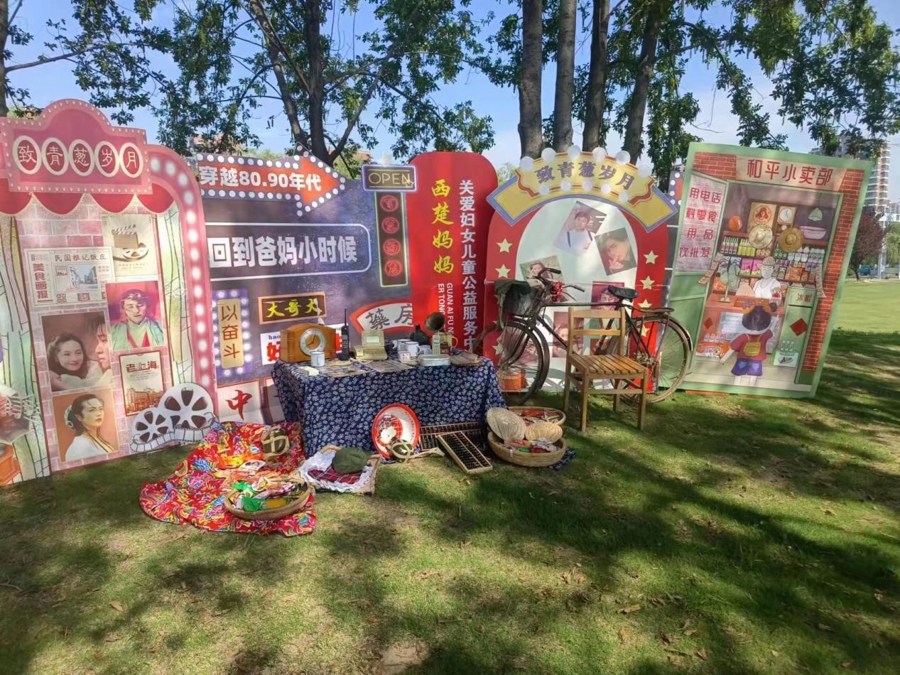 一大早,志愿者們早早來到蘇州公園旁大草坪,選好地點布置現場,為孩子營造溫馨快樂的游戲環境。