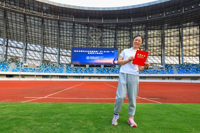 運動場上,建發公司桑曉芳以5分57秒33毫秒領先第二名12秒之多的絕對優勢斬獲女子青年組1500米田徑賽金牌。
