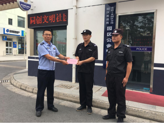 為表彰協助公安機關抓獲市局督辦系列盜竊案件嫌疑人的見義勇為行為,9月21日,蘇宿工業園區公安分局一行人來到園區公舍,根據《宿遷市見義勇為基金會獎勵撫恤辦法》和《宿遷市聯防保安人員見義勇為獎勵辦法》相關規定,研究決定對7月23日晚成功擒獲“園區公舍系列盜竊案”嫌疑人的兩名園區公舍保安張可、鞠銀龍進行獎勵。