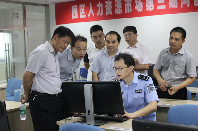 隨后,于堅強一行還參觀了位于園區人力資源市場的“蘇宿園區食品安全培訓考試中心”,并觀看了在線培訓系統的現場演示。