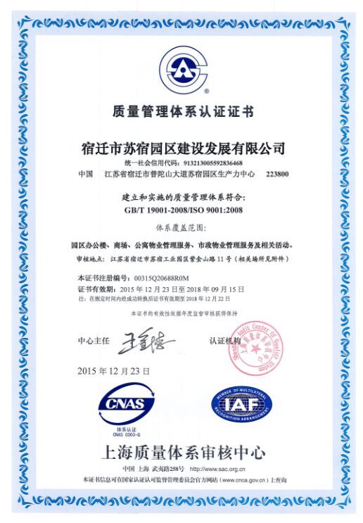 2016年1月份,公司正式獲得由上海質量認證中心頒發的ISO9001質量管理體系認證證書。