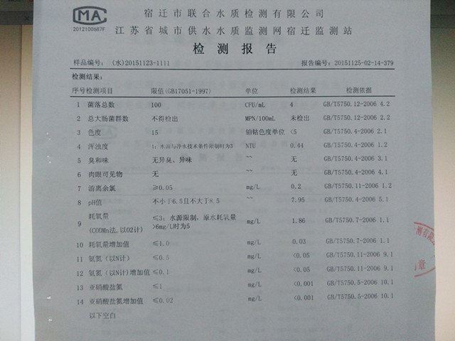 11月23日下午,建發公司組織宿遷市聯合市政工程有限公司開展三期生活水箱下半年清洗工作。截止25日,水箱清洗、消毒,水質檢測已全面完成。