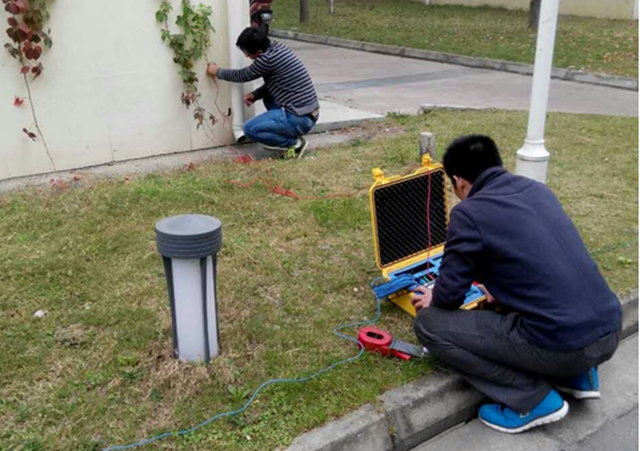 本次檢測范圍包含園區公舍二期12棟住宅樓、一棟商業樓,三期一棟住宅樓和一棟商業樓共計15棟。現場技術人員通過專業設備,檢查了樓宇防雷設施完好程度及防御能力。